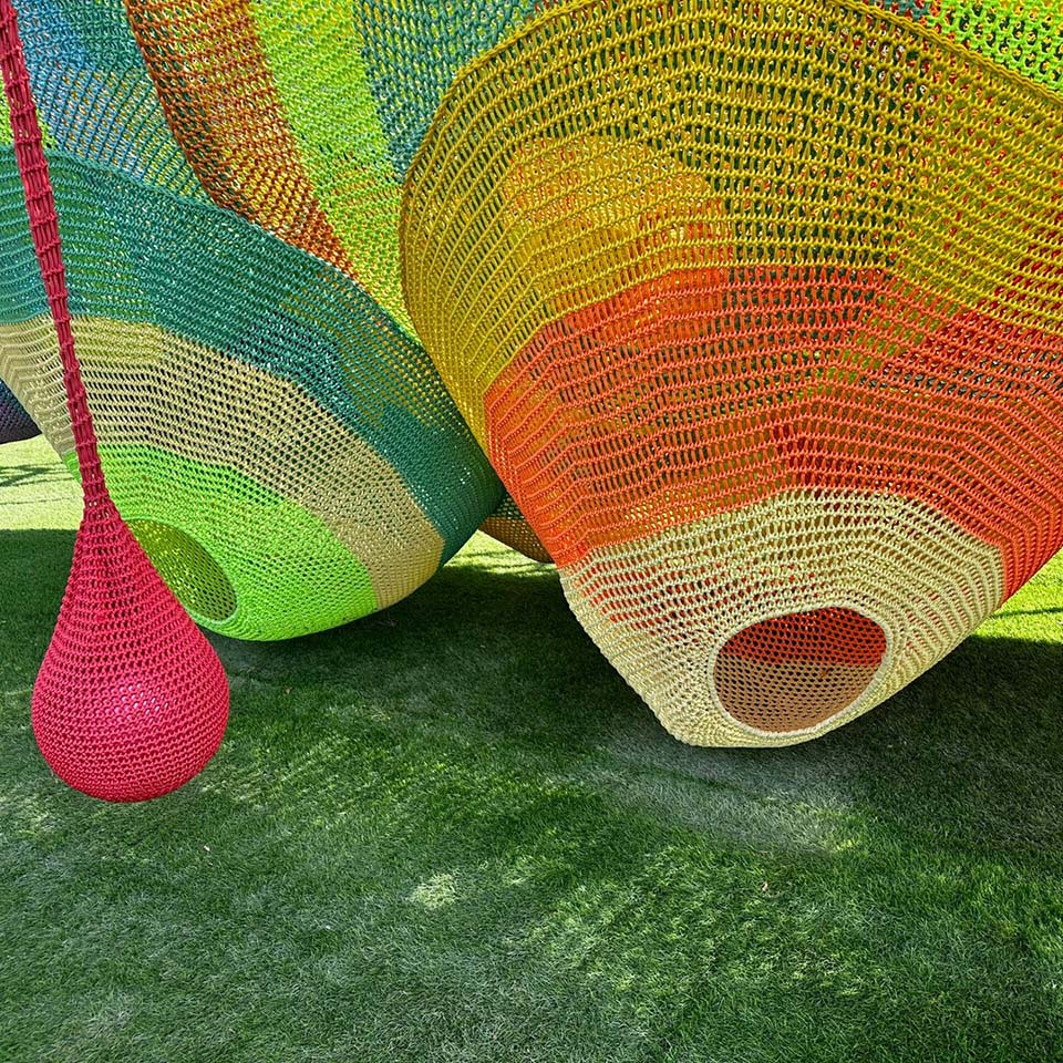 Crochet Park is a unique, free-play environment designed to help children develop balance skills and interact across different ages. Made by crocheting knots into a sturdy, fabric-like structure, the park features multiple levels or “floors,”each surrounded by secure netting and rubber-tiled areas to prevent falls. Parents are welcome to join their kids in exploring the layers, accessible through a small opening at the bottom that leads all the way to the top. Because we use high-quality, weather-resistant materials, Crochet Park can be installed both indoors and outdoors, offering a vibrant, imaginative space for kids to climb, bounce, and play safely. Our product line extends to include swings, slides, bounce climbing ropes, and more—ensuring plenty of variety for an engaging, all-ages adventure.