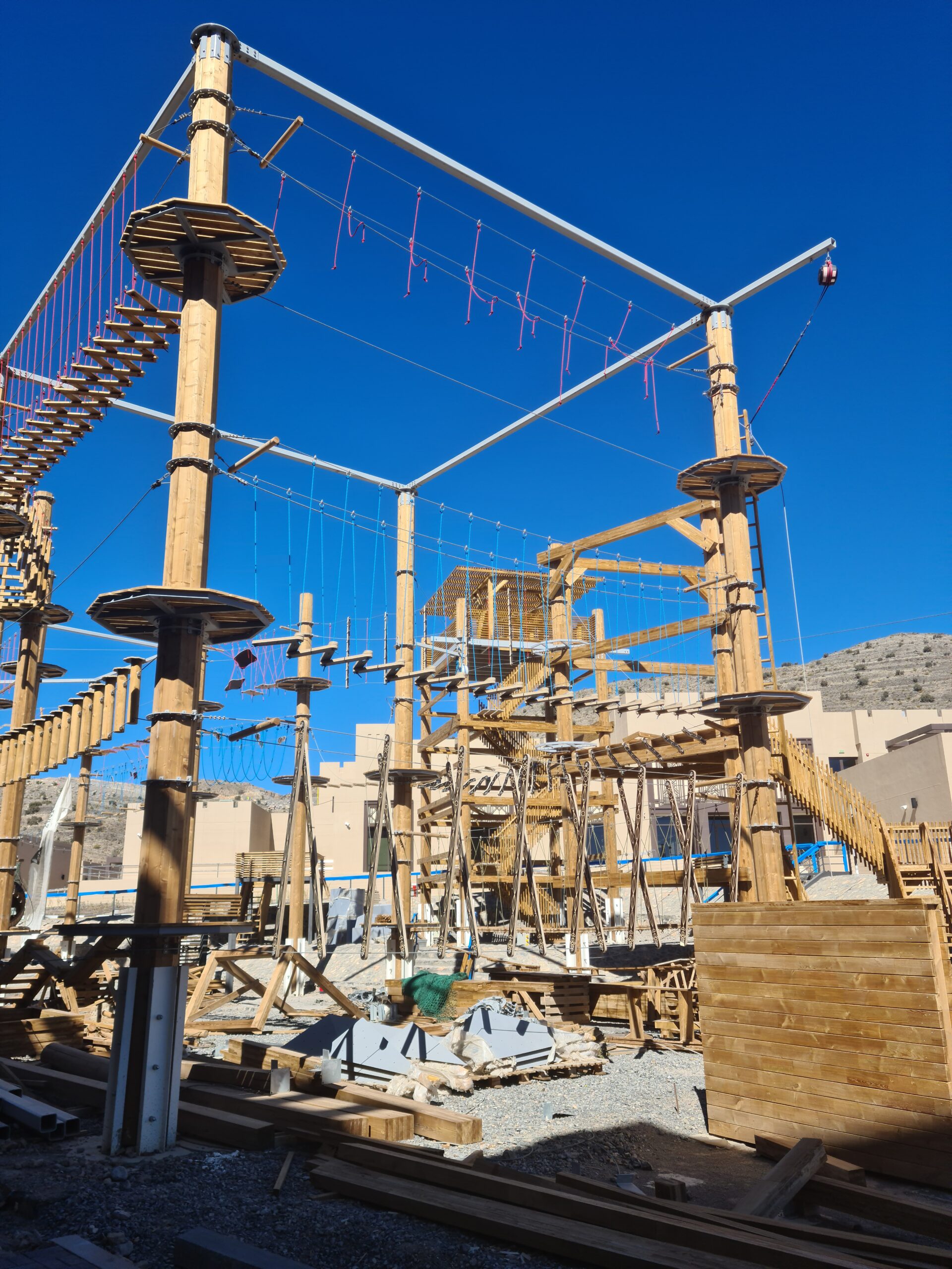 Naseem Adventure Park, located in Jabal al Akhdar in Oman, on the grounds of the dusit D2 resort. It is the first High Ropes course in Oman, set in an 8,000 sqm area, and features 4 levels, 35 obstacles at height, 3 climbing walls, one mega zipline and dedicated team building installations.
